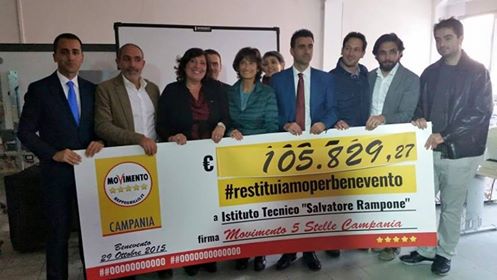 “ un sistema si cambia anche con l’esempio … e questo è il nostro esempio concreto, tangibile … la politica che vogliamo … la politica che torna ad essere vicino alla gente … ad essere servizio …”, ha dichiarato la portavoce Valeria Ciarambino, che poi ha aggiunto “ … gli altri fanno le sottoscrizioni per gli alluvionati di Benevento o organizzano spettacoli di beneficenza, noi restituiamo i nostri stipendi … in questo modo, molto presto una scuola devastata dall’alluvione potrà riaccogliere le centinaia di suoi studenti riprendendo le attività didattiche e gli insegnamenti di alta tecnologia, che ne fanno un’eccellenza in Campania …”.