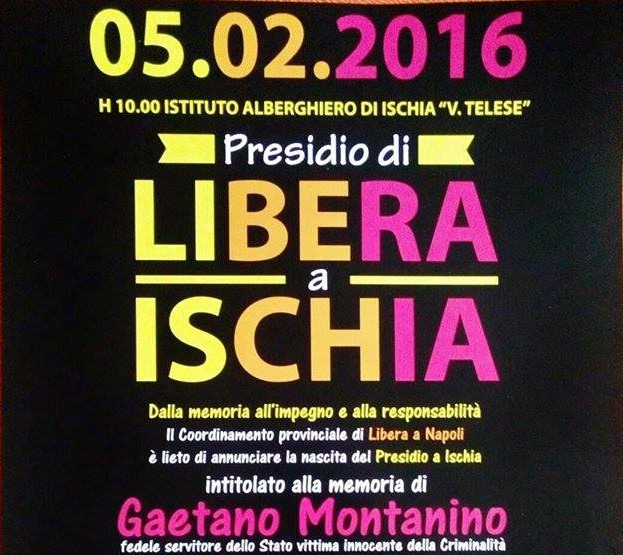 “Se “risolvere” non significa cercare una spiegazione a tutti i costi, allora proverò a non chiedermi più perché ti hanno portato via, ma troverò pace ovunque leggerò il tuo nome e ovunque, quel nome stesso, darà alla luce una nuova vita e un nuovo progetto di speranza”. E’ così che Veronica Montanino, fa rivivere continuamente il suo amato papà, strappatogli barbaramente mentre faceva il suo dovere di vigilante da alcuni balordi criminali in piazza Mercato, nel cuore di Napoli. Una morte assurda e crudele, una vittima innocente della criminalità, una vita spezzata e sottratta senza un perché ai suoi cari. Da quella terribile estate di sette anni fa, Veronica e la sua mamma , Lucia Di Mauro, portano il nome di Gaetano, meglio conosciuto come Mimmo, ovunque c’è bisogno di seminare speranza, testimoniare l’impegno per la legalità e , soprattutto, , ovunque è necessario mostrare come si mantiene la schiena dritta e la testa alta contro tutte le mafie. E così il sorriso giovane di Mimmo, la sua incontenibile voglia di vivere, le sue passioni, e il suo spiccato senso del dovere a tutti i costi arriva anche sull’isola di Ischia, dove il giorno 5 febbraio sarà tagliato il nastro del presidio Libera a lui dedicato.