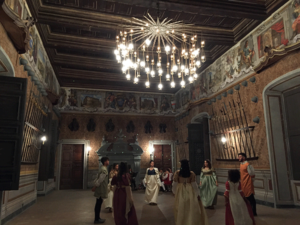 Per rendersene conto, bastava osservare la consapevolezza scenica con cui si muovevano i giovani attori del “Demiurgo” che nel secondo cortile del Castello e nelle stanze interne“suggerivano” agli spettatori la memoria dei Normanni e dei Longobardi, protagonisti della storia di Lauro: non era solo una sfilata di abiti più o meno storici: è stata, prima di tutto, una “interpretazione”, fatta di gesti, di sguardi, di voci, guidata dalla sapiente regia di Francesco Antonio Nappi, “colorata” dal fascino dei nomi, così intenso che gli attori, Valerio Lombardi, Marco Serra e Daniele Serra – ne cito solo tre, ma andrebbero citati tutti – si muovevano con la dignità austera con cui si sarebbero mosse le “figure” medioevali che essi incarnavano, Gisulfo, Guaimaro, Turgisio, tra i passi delle danze storiche disegnati dal gruppo “Eterea” sotto la direzione di Filomena Mazzocca.