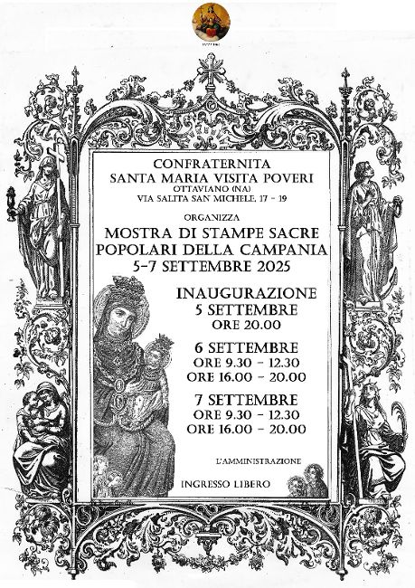 Ora l’Amministrazione della Confraternita allestisce una “Mostra di Stampe Sacre Popolari della Campania”, e, dunque, di stampe che hanno un grande valore non solo religioso, ma anche sociale, come si cercherà di dimostrare in un prossimo articolo, con il sostegno della signora Priora Michela Annunziata, e anche di questa novità eccezionale, una Priora, si dovrà parlare.