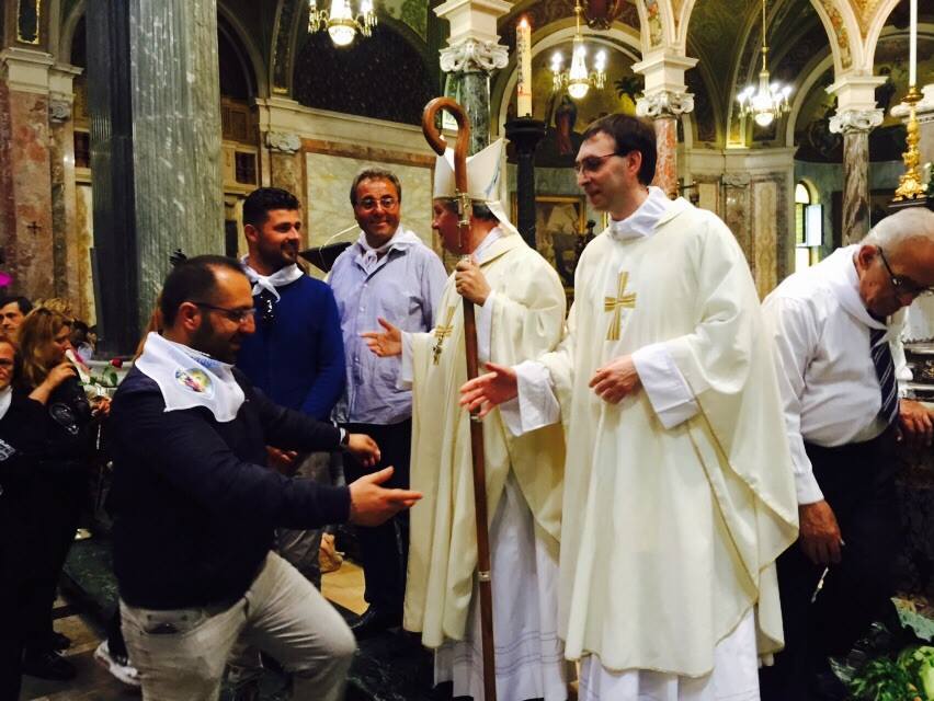 Stamattina l’arcivescovo di Pompei, Tommaso Caputo, e il vescovo di Acerra, Antonio Di Donna, hanno benedetto frutta e ortaggi portati a piedi fino al santuario del Rosario dai contadini delle terre a nord di Napoli.