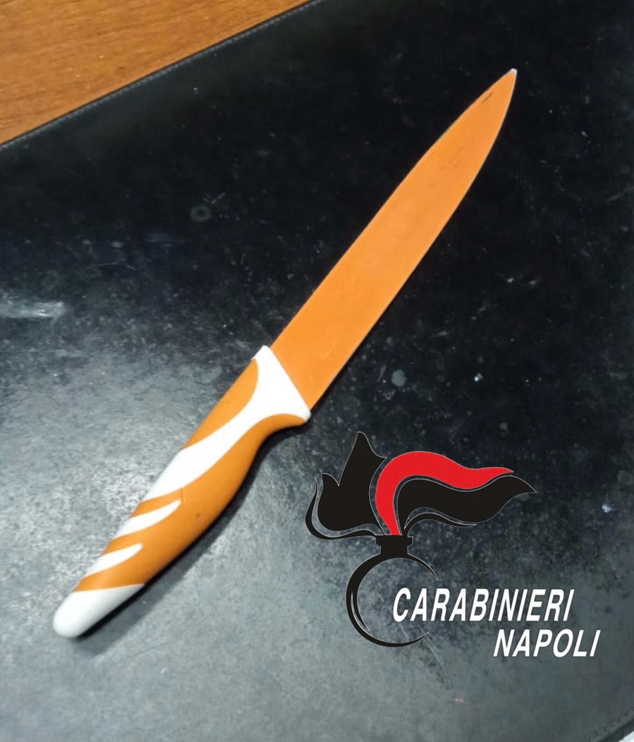 L’uomo brandisce un coltello da cucina e sta aggredendo la donna che sanguina dalla mano, ha fra le braccia il bimbo di 7 mesi. I Carabinieri si catapultano sull’uomo che in pochi attimi di terrore viene disarmato e bloccato.