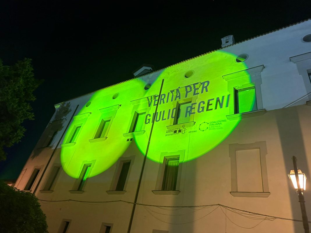 Dopo l’accensione delle luci gialle con la scritta ‘Verità per Giulio Regeni’ e l’apposizione di uno striscione all’esterno del Municipio, l’amministrazione comunale parteciperà all’incontro che si terrà questa sera nella Casa del Popolo per un momento di riflessione durante il quale verrà proiettato il cortometraggio ‘9 giorni al Cairo’.