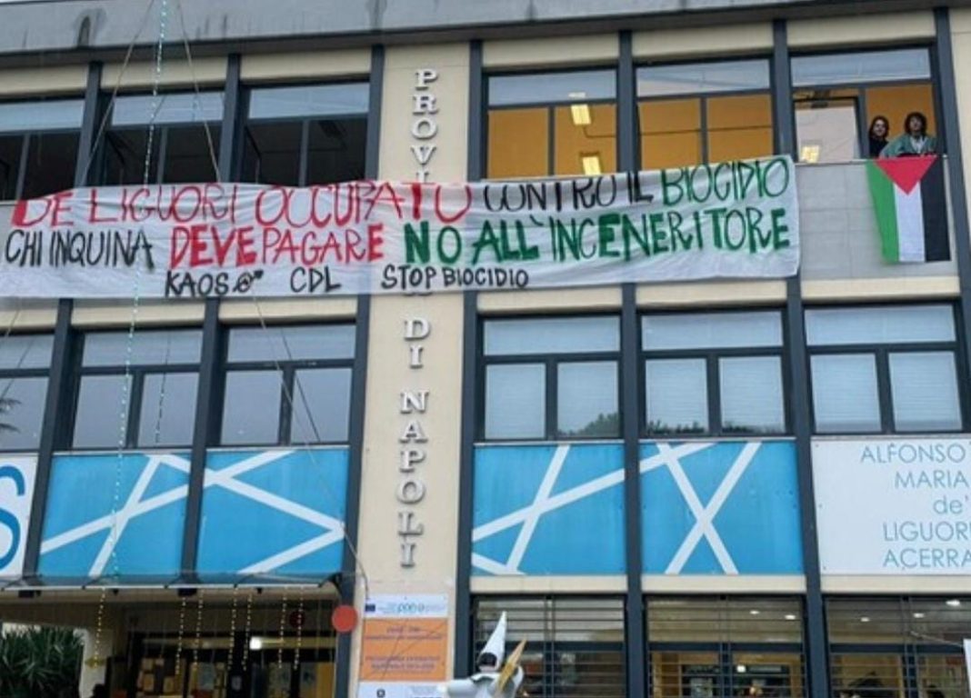 ACERRA – Studenti del liceo Alfonso Maria De Liguori di Acerra, insieme al coordinamento KAOS, hanno occupato l’istituto, secondo quanto rendono noto in un comunicato, “per porre fine al silenzio sulla questione biocidio. Anni fa, mentre la nostra classe dirigente tentava di nascondere la realtà, pochi coraggiosi dottori- è scritto in una nota – realizzarono controinchieste, scoprendo che chi nasce nel nostro territorio soffre di un indebolimento a livello del dna, una condanna dalla nascita a una probabilità molto più alta di contrarre tumori e di morire di tumore rispetto a unə cittadinə di qualunque altra Regione; difatti, Acerra fa parte del “Triangolo della Morte”, una zona nota per incidenza e mortalità dei tumori notevolmente più alta rispetto al resto d’Italia”.