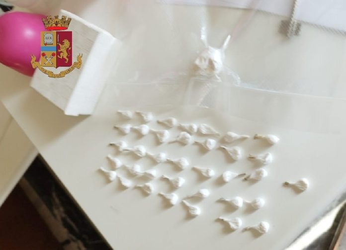 I poliziotti hanno controllato il locale dove hanno rinvenuto una sfera in plastica con all’interno 36 involucri contenenti circa 6 grammi di cocaina ed un altro involucro contenente circa 9 grammi della stessa sostanza.