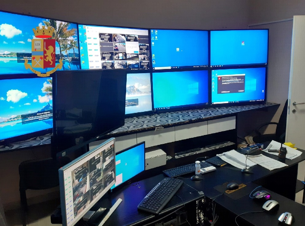 I poliziotti, all’interno dell’esercizio, hanno scoperto una stanza adibita a sala operativa da controllo remoto completa di 10 monitor, alcune scrivanie utilizzate come postazioni di lavoro complete di radio e microfoni e diversi biglietti da visita riportanti anche l’utenza telefonica di un collaboratore.