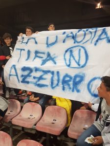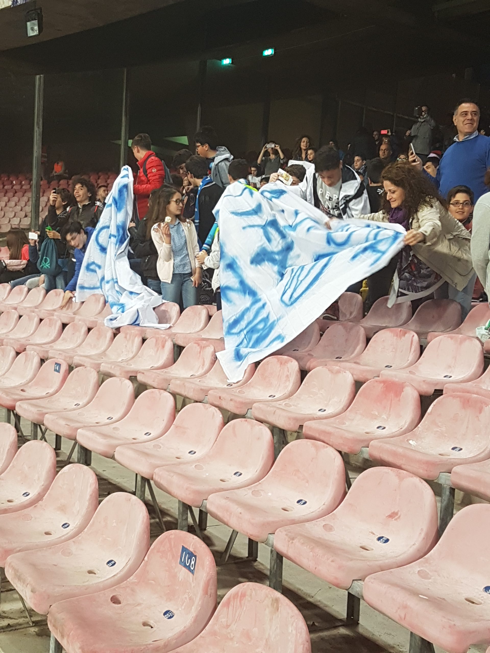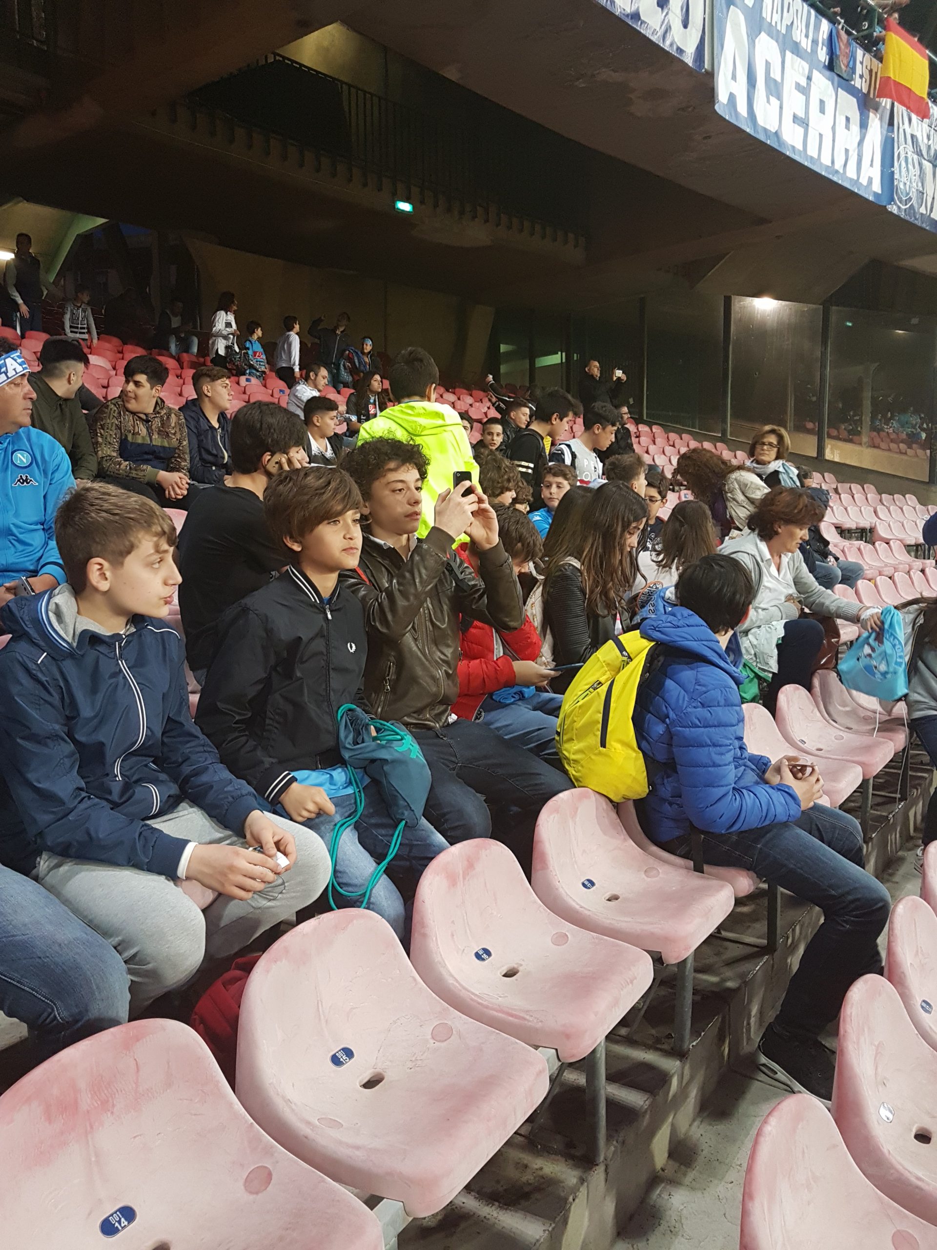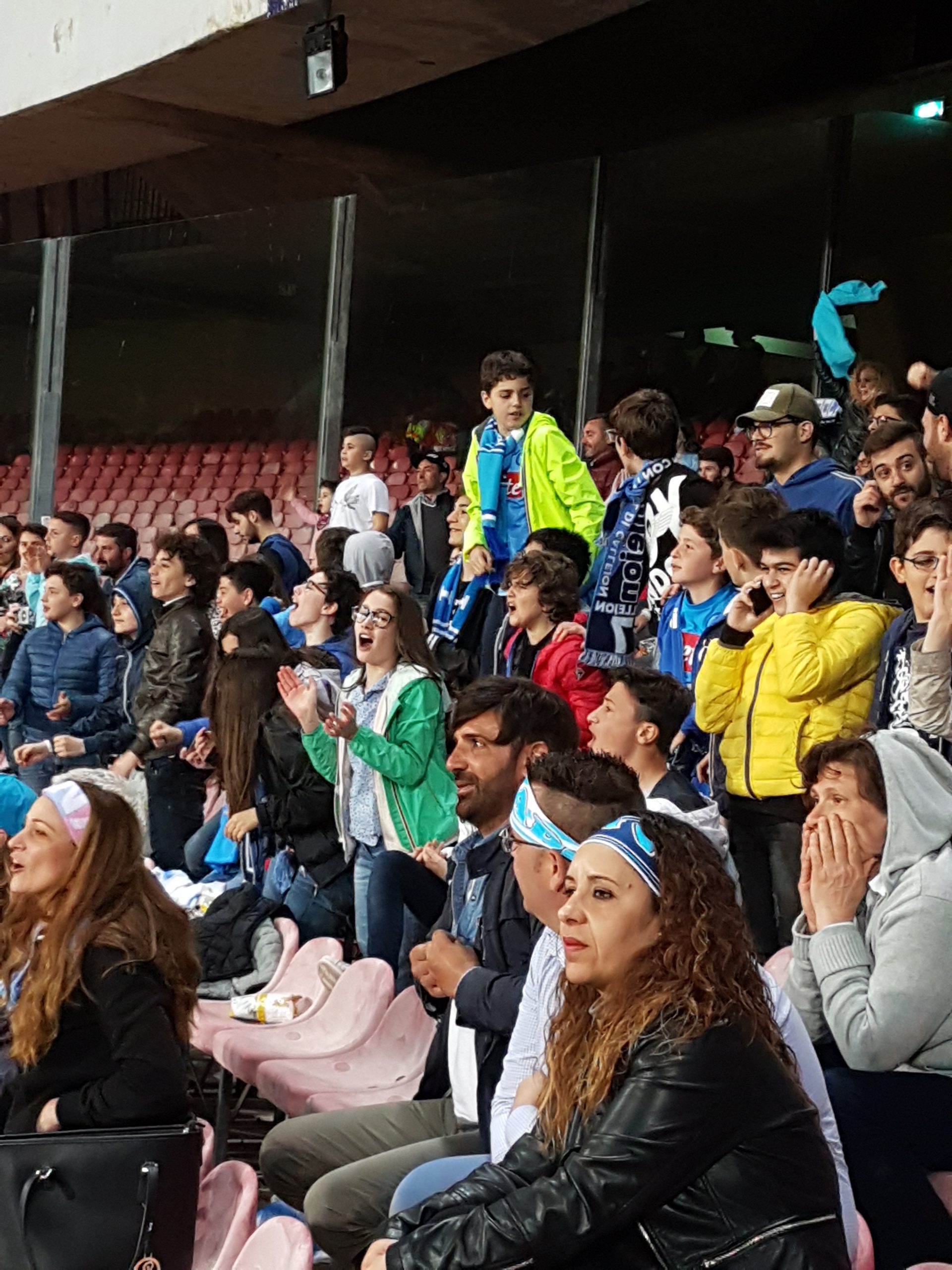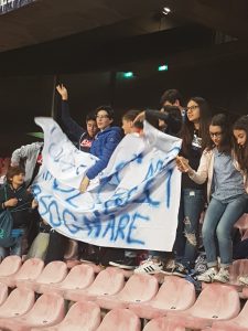 Accompagnati da tre insegnanti, gli alluni della “D’Aosta” si prendono un pezzettino dei distinti inferiori e monopolizzano la scena: tirano fuori striscioni, partecipano ai cori, incitano. Sparano battute fulminanti: “Ma Insigne è alto un metro e cinquanta?”, esibiscono una competenza impressionante. E, soprattutto, si divertono: impossibile non girarsi a guardarli mentre esultano ai gol del Napoli (che, per la cronaca, ha vinto 3 a 0) o soffrono per le occasioni mancati. E, infine, c’è “Un giorno all’improvviso”, il coro dei tifosi partenopei cantato con i giocatori sotto la curva, dopo la partita: i piccoli ottavianesi partecipano con entusiasmo, suggellano la serata vittoriosa sentendosi capi ultrà. Sono uno spettacolo nello spettacolo, un inno allo sport sano. Potenti del calcio, fate meno danni possibili: i ragazzi non lo meritano. Ripetiamo: lo sport è roba loro.