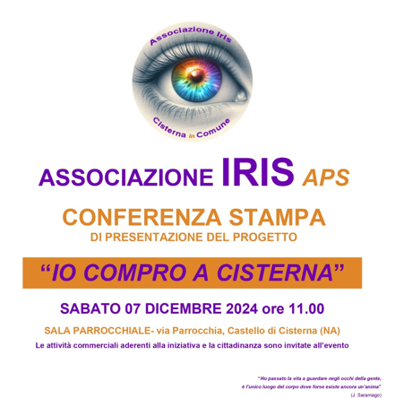 “Ogni occhio ha il suo sguardo”, non è solo uno slogan, ma un invito a guardare il mondo con la consapevolezza che ogni persona porta con sé una prospettiva unica, un modo diverso di osservare e vivere la realtà. Solo unendo le diverse prospettive è possibile creare un progetto di ampio respiro. Ed è proprio questo principio che guida l’associazione IRIS la quale, si è fatta promotrice di un’iniziativa che non solo sostiene il commercio locale, ma anche la rete sociale del territorio. Il progetto innovativo prende il nome di: “Io Compro a Cisterna”.