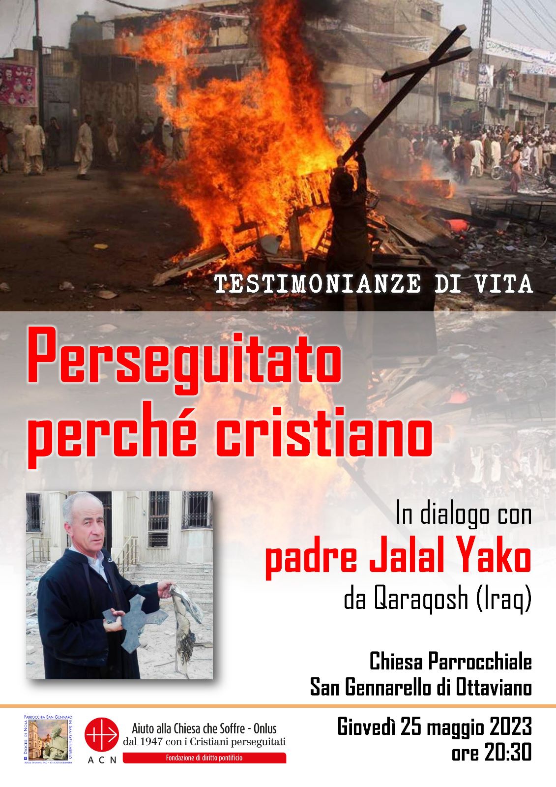 La parrocchia che ospita questa statua sfigurata è dedicata al martire campano per eccellenza Januario e nel suo segno, la presenza di questa statua vuole rappresentare un attestato di solidarietà per i martiri cristiani di ieri e di oggi. A tal fine Padre Jalal Yako, sacerdote iracheno originario di Qaraqosh nella Piana di Ninive giovedì 25 maggio dopo la Santa Messa serale porterà la sua esperienza della dolorosa persecuzione in Iraq.
