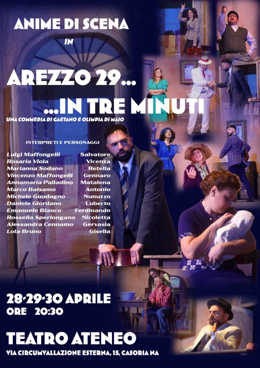 Cresce l’attesa a Casoria per “Arezzo 29… in tre minuti”, la commedia che andrà in scena al Teatro Ateneo Casoria dal 28 al 30 aprile.