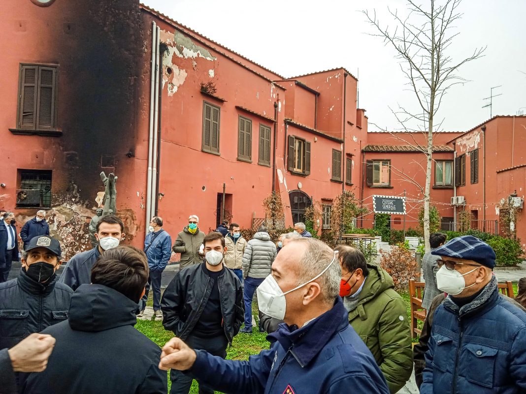 Una rapida perlustrazione su un silenzioso monopattino elettrico e poi l’irruzione nell’area degli obiettivi da colpire. Le scene che immortalano gli autori dell’attentato incendiario di Capodanno al comando della polizia municipale di Pomigliano d’Arco sono contenute in due filmati registrati dalle telecamere di videosorveglianza installate all’interno e all’esterno dell’edificio che ospita la sede dei caschi bianchi. I filmati sono a disposizione dei carabinieri del nucleo investigativo di Castello di Cisterna e costituiscono la prova che purtroppo non solo sia di natura dolosa ma che sia anche il frutto di un’azione pianificata il terribile incendio che ha distrutto tre auto di servizio e gravemente danneggiato l’edificio in cui si trova il comando della polizia locale. Sul posto gli investigatori sono anche riusciti a prendere le impronte dei criminali che hanno messo a segno il raid. Gli attentatori sono penetrati nel cortile in cui erano parcheggiate le vetture scavalcando una vetrata laterale alta un paio di metri. Le loro impronte sono state lasciate qui, sul vetro. Una telecamera è riuscita a filmare un uomo che a bordo di un monopattino elettrico si è avvicinato al muro di cinta del comando. Dal manubrio del mezzo penzolava una busta di plastica che conteneva sicuramente qualcosa. In un altro filmato di una seconda telecamera si vede invece una persona che armeggia su una fiancata di una delle vetture che di lì a poco avrebbero preso fuoco. Sempre in base a quanto trapelato gli attentatori potrebbero aver utilizzato – ma questa è ancora un’ipotesi – del liquido infiammabile che è stato cosparso sugli pneumatici delle vetture da incendiare. Le fiamme, altissime, sono divampate verso le quattro e mezza del mattino di Capodanno. Hanno distrutto tre auto della polizia locale, una delle quali è una Mercedes confiscata a un clan di camorra, e seriamente danneggiato una parte e il cortile dell’antico Palazzo Baronale, il maniero medievale in cui c’è la sede della municipale, accanto al Comune. Il fuoco ha anche investito i tubi del gas metano. Soltanto grazie al tempestivo intervento dei vigili del fuoco è stata evitata un pericolosissima esplosione proprio in pieno centro cittadino, mentre la stragrande maggioranza della popolazione stava dormendo. E’ una situazione che ricorda molto da vicino i fatti dell’inverno 2009, quando tra i mesi di gennaio e febbraio Pomigliano fu colpita da una serie di attentati contro il sindaco di allora, Antonio Della Ratta, e le caserme dei carabinieri. Una bomba carta zeppa di chiodi fu fatta esplodere su una finestra della stazione carabinieri di Pomigliano, al corso Umberto, e un altro ordigno esplose nel parcheggio interno della caserma Carlo Alberto Dalla Chiesa di Castello di Cisterna. Il sindaco Della Ratta invece rimediò una serie di colpi di pistola sparati sul portone di casa e la minaccia di un fantoccio impiccato sotto l’ingresso del Comune. Tra gli autori di questi atti intimidatori fu individuato un pregiudicato di 36 anni che fu anche arrestato dai militari. Era considerato affiliato a un noto clan della camorra di Pomigliano. E adesso pare che la città delle fabbriche sia rimpiombata nello stesso clima di terrore di dodici anni fa. Ieri nel cortile del comando annerito dall’incendio c’è stata una manifestazione spontanea di solidarietà al dirigente della municipale, Luigi Maiello, e a tutti i caschi bianchi di Pomigliano.