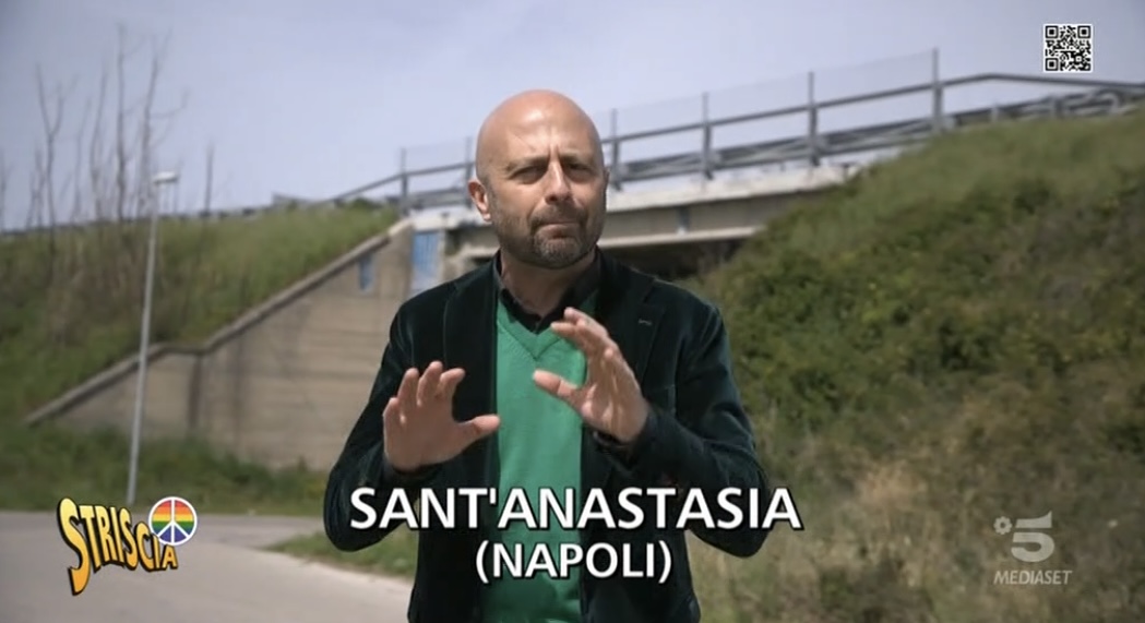 Il popolare inviato del tg satirico Luca Abete è recato a Sant’Anastasia per mostrare come da mesi – se non anni – le carcasse di auto e altri rifiuti speciali stazionino in mezzo ai campi coltivati o lungo le strade di campagna. Abete ha anche intervistato il sindaco Carmine Esposito.