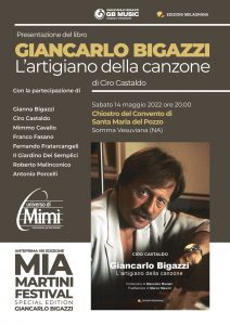Somma Vesuviana. Si terrà sabato 14 maggio, alle ore 20:00 presso il Chiostro di Santa Maria del Pozzo, un’anteprima del Mia Martini Festival 2022 che giunto all’ottavo anno dedica una special edition a Giancarlo Bigazzi attraverso la presentazione del libro “Giancarlo Bigazzi. L’artigiano della canzone” di Ciro Castaldo, direttore artistico del festival e presidente dell’associazione organizzatrice Universo di Mimì.