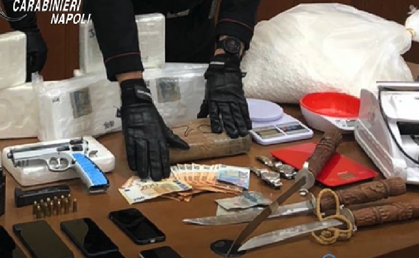 I Carabinieri del nucleo investigativo hanno rinvenuto nella loro abitazione di San Gennaro Vesuviano una pistola marca cz mod.75sp-01 risultata rubata e pronta all’uso e 12 munizioni calibro 9×21. Rinvenuti e sequestrati anche 13 chili di sostanza da taglio, un impianto di video sorveglianza con 7 telecamere perimetrali, diversi smartphones e 3 katane.