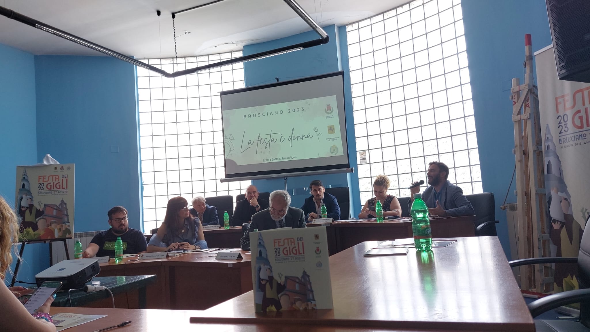 Ieri mattina, presso la Sala Consiliare “Giancarlo Siani”, del Palazzo Comunale di Brusciano, si è tenuta la conferenza stampa di presentazione del programma dei festeggiamenti, e del manifesto ufficiale, dell’edizione della Festa dei Gigli di Brusciano del 2023. Durante i lavori, è stato presentato finanche un video dal titolo “La festa è donna”, realizzato dall’artista bruscianese Gennaro Ronda, ed interpretato da alcuni giovani del posto.