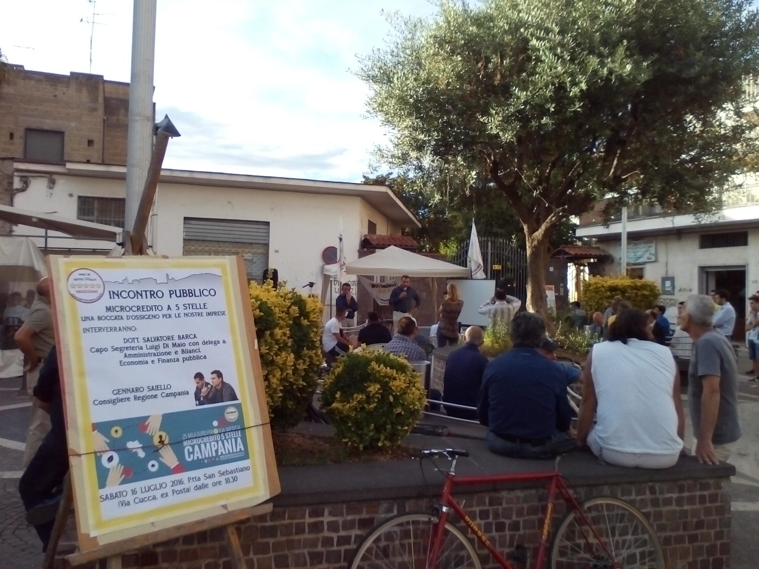 A Brusciano, sabato 16 luglio, in Piazzetta San Sebastiano, fra l’omonima chiesetta e la loro propria “Non Sede” gli attivisti del Movimento 5 Stelle si sono ritrovati, insieme al consigliere della Regione Campania Gennaro Saiello, al cospetto di una interessata cittadinanza per la presentazione delle attività locali in corso e di quanto programmato per il prossimo futuro.
