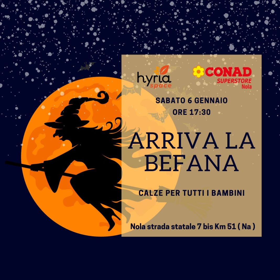 Sabato 6, invece, allo stesso orario (17. 30) la simpatica vecchietta con la sua scopa accoglierà gli ospiti della galleria commerciale HYRIA SPACE di via Variante 7bis a Nola ed anche in questo caso avrà con sè un sacco ricco di cioccolato e caramelle per i bambini.
