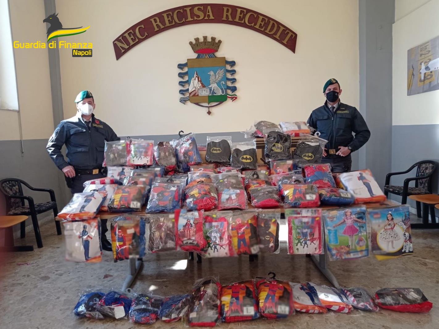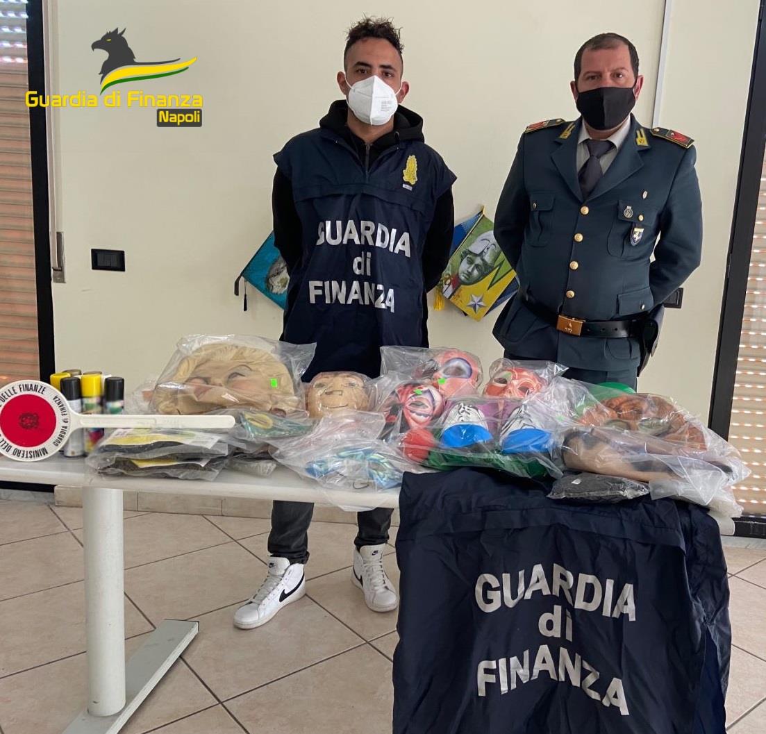 Anche a San Gennaro Vesuviano, la Compagnia di Ottaviano ha sequestrato in un negozio gestito da un 44enne cinese 710 articoli, tra maschere e costumi di carnevale, non sicuri.
