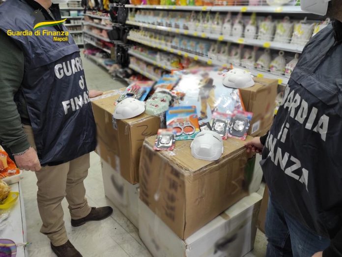 A Boscoreale il Gruppo della Guardia di Finanza di Torre Annunziata ha sequestrato in un negozio di casalinghi gestito da un 34enne di origine cinese 2900 mascherine facciali e circa 100 articoli di carnevale non sicuri.