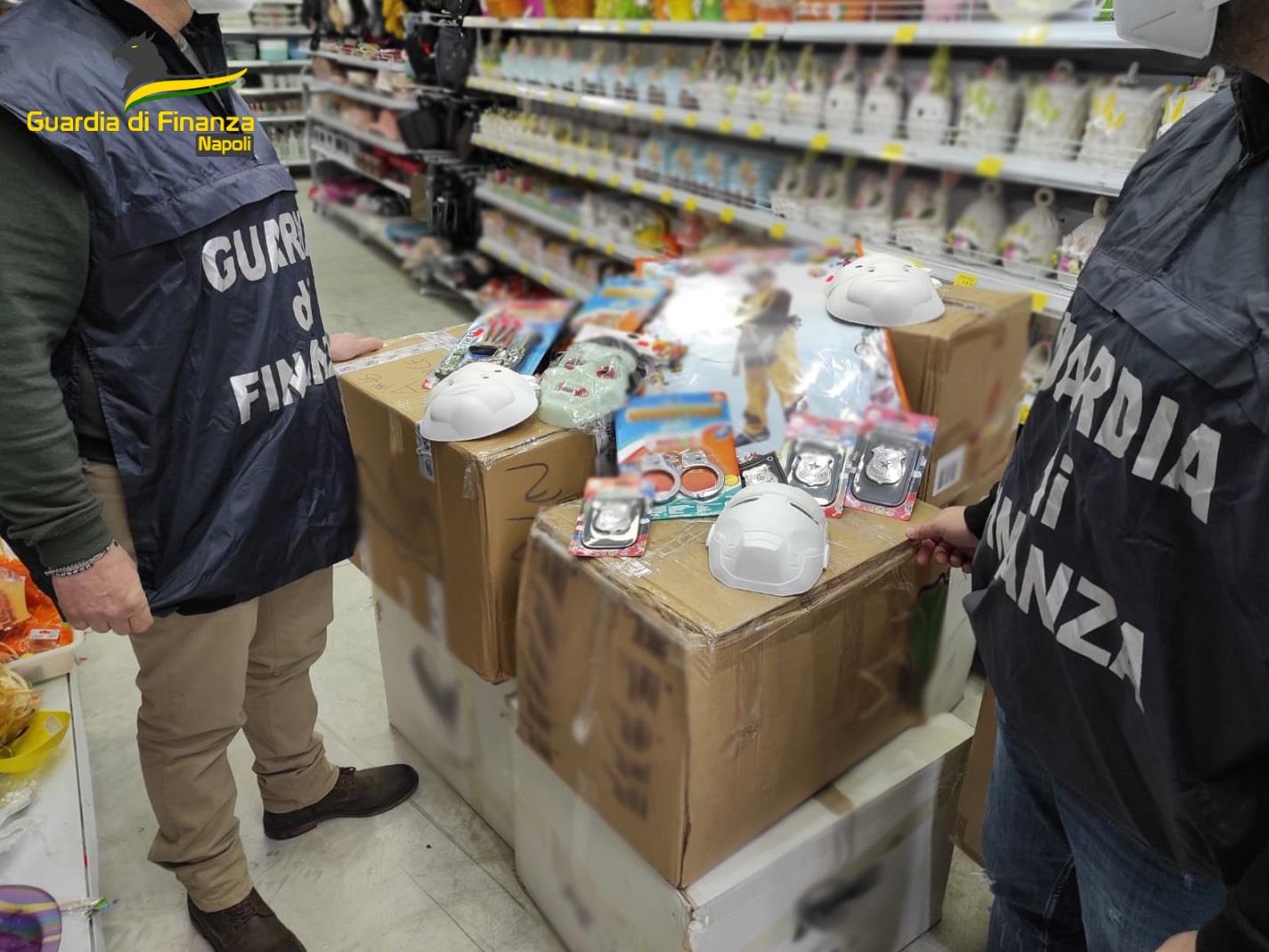 A Nola il locale Gruppo GdiF ha sequestrato in un emporio gestito da un 56enne cinese oltre 300.000 accessori di carnevale privi dei requisiti minimi di sicurezza per il consumatore.