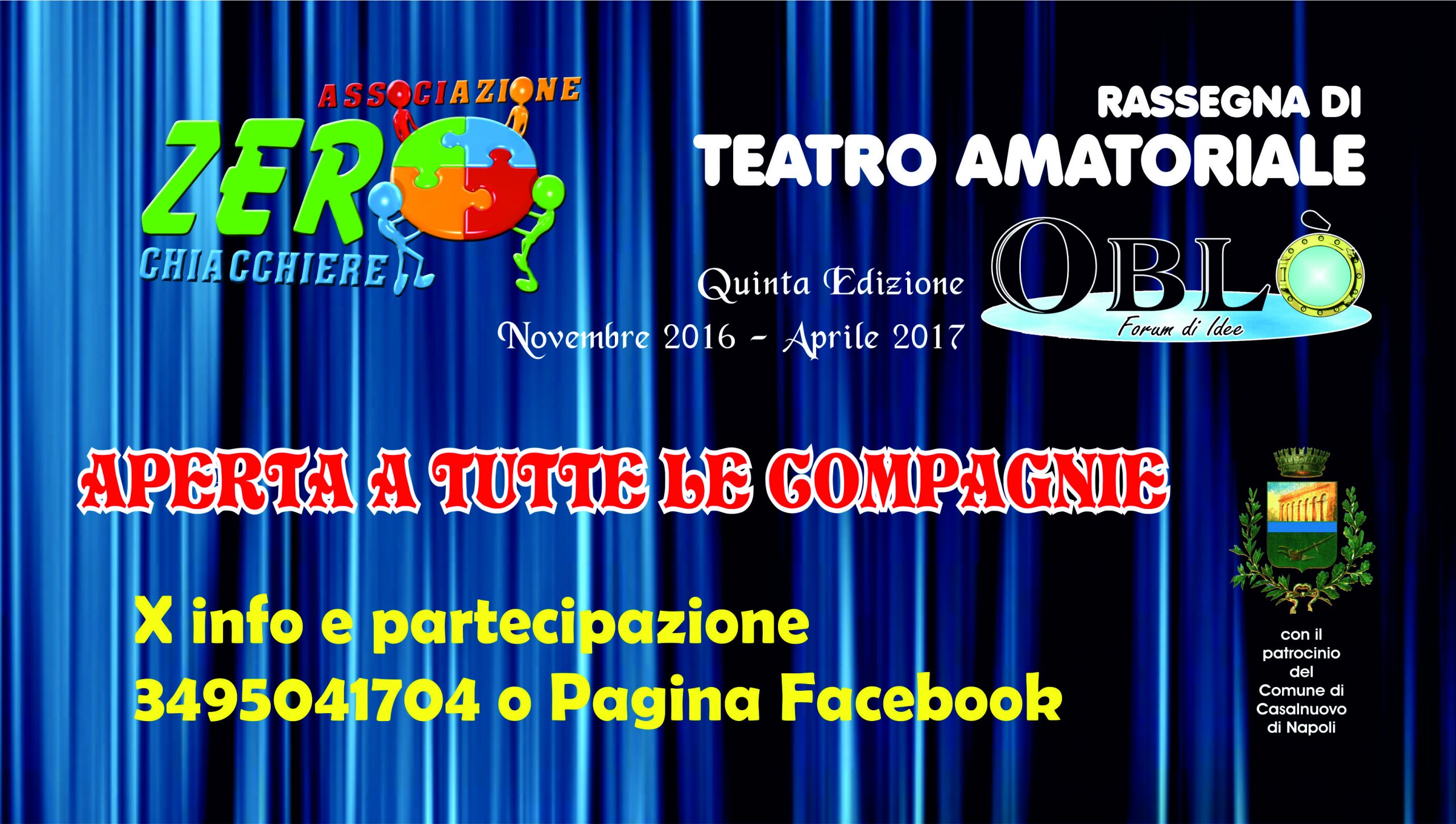 Prende il via il 12 novembre prossimo la V edizione della Rassegna di Teatro Amatoriale Oblò forum di idee.