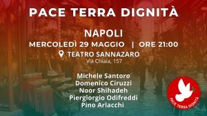 Alle ore 21.00, Michele Santoro, con Piergiorgio Odifreddi, Pino Arlacchi, Noor Shihadeh e Domenico Ciruzzi sarà a Napoli al teatro Sannazaro in via Chiaia.