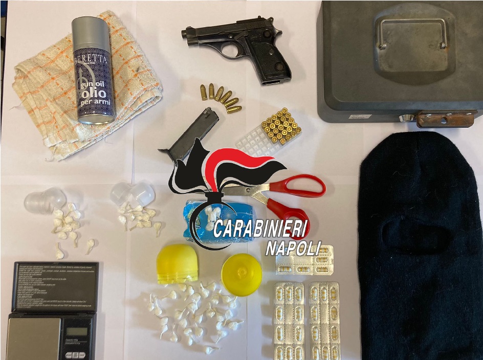 In casa l’ucraino armato di una pistola beretta 7,65 con 6 colpi nel serbatoio, provento di un furto commesso nel maggio del 2020 a Marigliano. A sua disposizione anche altri 24 proiettili dello stesso calibro.
