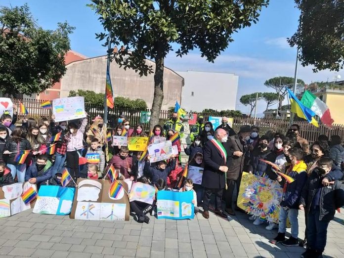 Gli alunni della scuola “primaria del plesso Sciascia” e della scuola “secondaria di primo grado A. De Gasperi”, insieme alla cittadinanza, hanno portato un messaggio di pace gridando “no alla guerra” e la lettura di alcune poesie. All’evento erano presenti le istituzioni, tra cui il sindaco Aniello Rega e la preside Valeria Vaccaro, i quali, hanno espresso la loro solidarietà al popolo ucraino, “sia ai concittadini ucraini residenti in Campania, sia ai risiedenti in Ucraina“, che stanno soffrendo pene atroci per difendere la “libertà” ha specificato il primo cittadino.
