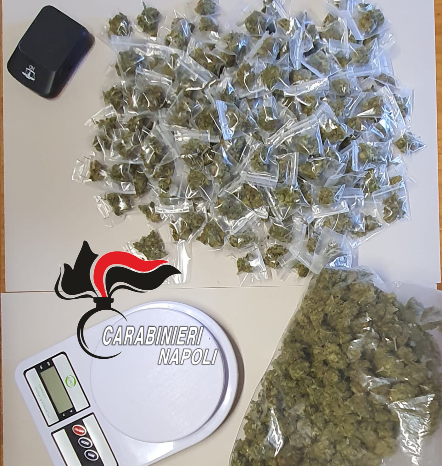 Nel rione madonnelle di Acerra i militari della locale stazione hanno rinvenuto nei locali condominiali 576 grammi di marijuana.