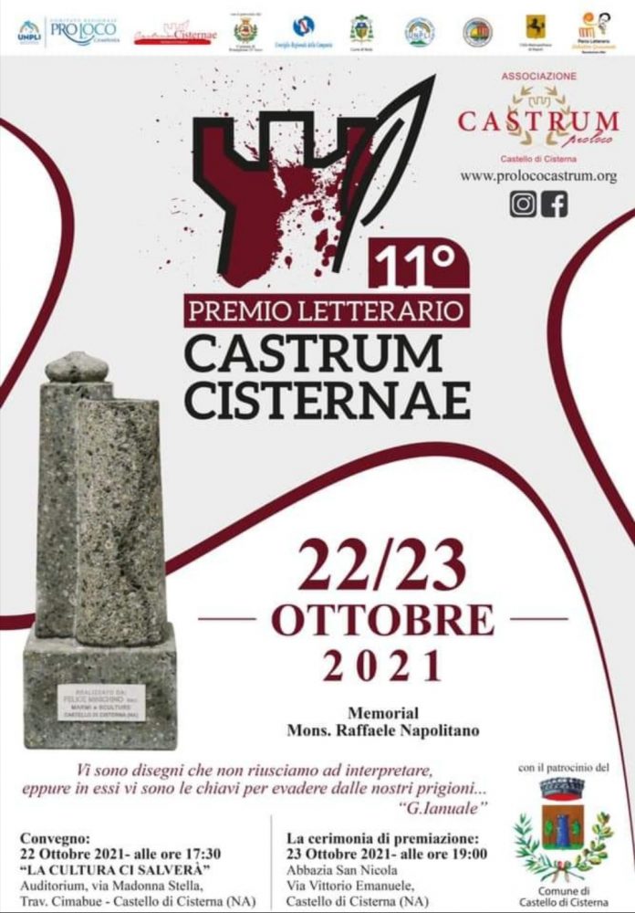 Il 22 e 23 ottobre a Castello di Cisterna si svolgerà XI edizione del premio letterario “Castrum Cisternae” – Memorial “Mons. Raffaele Napolitano”, organizzato dall’Associazione E.T.S. Pro Loco.