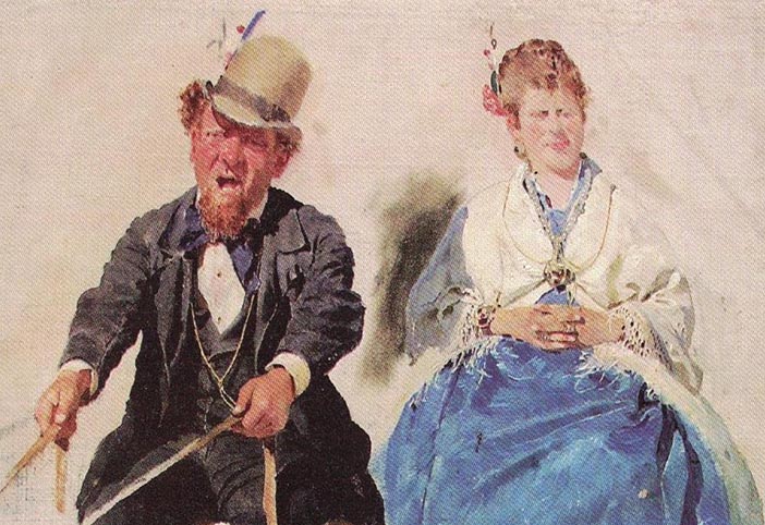 “Figure in calesse” è un olio su tela ( cm.21,5 x 26, 5, in collezione privata) che Alceste Campriani ( Terni, 1848 – Lucca, 1933) dipinse tra il 1863 e il 1865, e cioè negli anni in cui egli frequentò i pittori della “Scuola di Resina”, in particolare Federico Rossano, Marco De Gregorio e Francesco Lojacono. In questo periodo Campriani dipinse un gran numero di tavolette con personaggi del mondo “popolare”, percepiti con sorridente simpatia, e visti spesso come rappresentanti della filosofia degli “umili”.