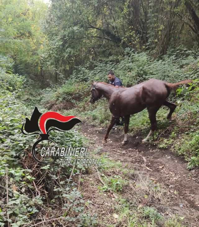 Ottaviano – Parco nazionale: Cavallo imbizzarrito crea panico tra la gente e finisce in un dirupo. Carabinieri forestali salvano il purosangue