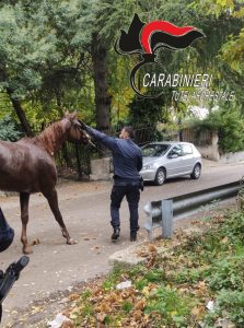 Provvidenziale l’intervento di un militare che ha tagliato con attrezzi di fortuna la vegetazione ed è riuscito a calmare l’animale. Il personale dell’Asl – intervenuto sul posto per le prime cure – ha trovato l’esemplare arabo in buone condizioni di salute complimentandosi con i Carabinieri per il tempestivo intervento.
