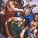 Il piccoletto sorride: “Nel Giudizio Universale, alla Sistina, tieni presente? Michelangelo dipinse corpi nudi, volendo intendere la nudità dell’anima davanti a Dio. Ma dopo il Concilio di Trento venne ordinato al pittore Domenico Ricciarelli da Volterra di mettere le mani sul Giudizio di Michelangelo, di coprire gli arnesi sessuali di uomini e donne con foglie di fico, panni e drappi. Santa Caterina d’ Alessandria venne rivestita tutta, e non l’hanno più spogliata (v.f.) perché Michelangelo l’aveva dipinta nuda, inginocchiata e rivolta verso lo spettatore, e San Biagio sta piazzato proprio dietro di lei, mi capisci: una posizione veramente sconcia… Forse hai ragione, è meglio che il gruppo di Renzi e Rohani faccia un altro percorso.”. Ma io, Venere, ho deciso che la storia avrà una conclusione diversa. Il calvo dal muso di porco mi fissa un’ultima volta, e io l’incanto: lui, vinto dall’incantesimo, scuote la testa: “No, non cambiamo nessun percorso, non c’è più tempo, e se durante il nuovo percorso succede qualcosa? un attentato? l’attacco di un pazzo? No, no, lasciamo le cose come stanno.. Questi nudi, li copriamo.”