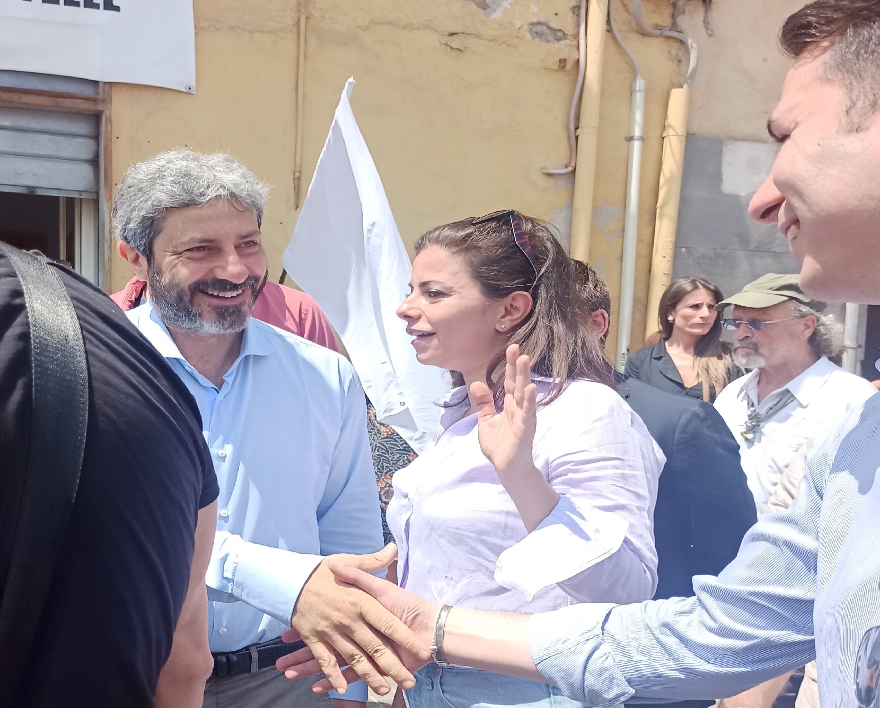 Acerra. Tanta gente accanto. Non dietro di sè. A scambiare una parola, un sorriso, un caffè. La politica torna protagonista ad Acerra in un giorno evocativo per l’intera cittadinanza. Nella domenica in cui si celebra il patrono San Cuono, è arrivato in città il presidente della Camera Roberto Fico per supportare la lista del Movimento 5 Stelle, capeggiata dalla co-sindaca Carmela Auriemma, e il candidato a sindaco della coalizione X Acerra Unita Andrea Piatto.
