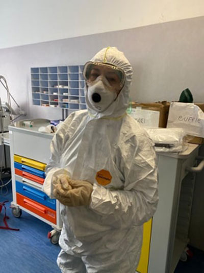 Durante il mio turno, protetta da occhiali, mascherina, tuta di contenimento biologico, mi sembra di perdere l’identità, che a volte ci permette, anche solo con un sorriso, di tranquillizzare chi ci è di fronte e chiede il nostro aiuto. Questo è successo: su due lettini in codice Covid, vi erano un padre e un figlio, entrambi sottoposti a terapia di ventilazione. Purtroppo, il papà si è aggravato nella respirazione e il medico ha preso la decisione di intubarlo. La tragedia nasce nel momento in cui il medico doveva chiedere l’autorizzazione ad un parente. Dato lo stato di isolamento, l’unico era il figlio che gli era accanto. Mi sono avvicinata, poiché avevo il nome scritto sul petto, mi ha chiamata per nome cercando il conforto di rivedere il papà prima che venisse intubato. La scena di quel padre e di quel figlio mi rimarrà impressa nel cuore e nella mente. L’ho aiutato ad avvicinarsi. Quello che poteva essere, forse, l’ultimo addio.