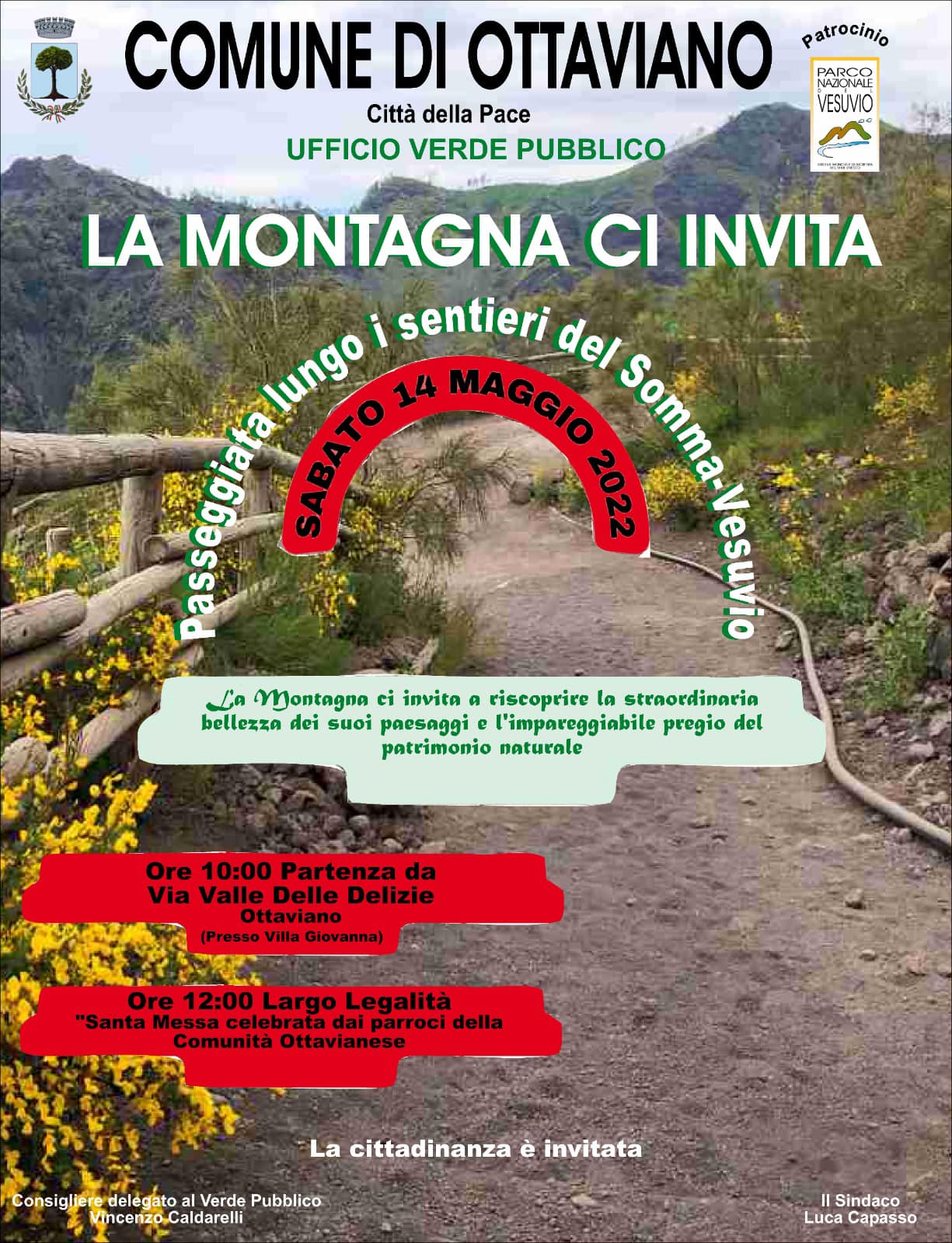Sabato 14 maggio torna l’evento “la Montagna ci invita”, disegnato dall’ Amministrazione Comunale di Ottaviano, e organizzato da Vincenzo Caldarelli, consigliere delegato alla cura del “Verde pubblico”.