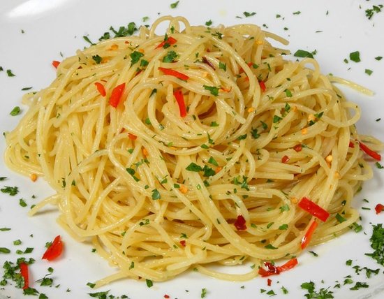 Non è difficile preparare gli spaghetti aglio, olio e peperoncino. Tagliate a metà due spicchi d’aglio, privateli dell”’anima” e tritateli finemente; il peperoncino tagliatelo a rondelle sottili. Scaldate in una padella 4 cucchiai d’olio, unite l’aglio tritato e fatelo soffriggere per qualche minuto, evitando però che bruci. Unite il peperoncino e fatelo soffriggere per pochi secondi. Cotti gli spaghetti in abbondante acqua salata e scolati al dente, versateli nella padella in cui sono l’aglio e il peperoncino e fateli saltare a fuoco vivo perché il condimento e il sapore si distribuiscano equamente. A tavola andrà un “piatto” che è un solo, intenso ardore. ( La ricetta è pubblicata dal blog “Il cucchiaio d’argento”).