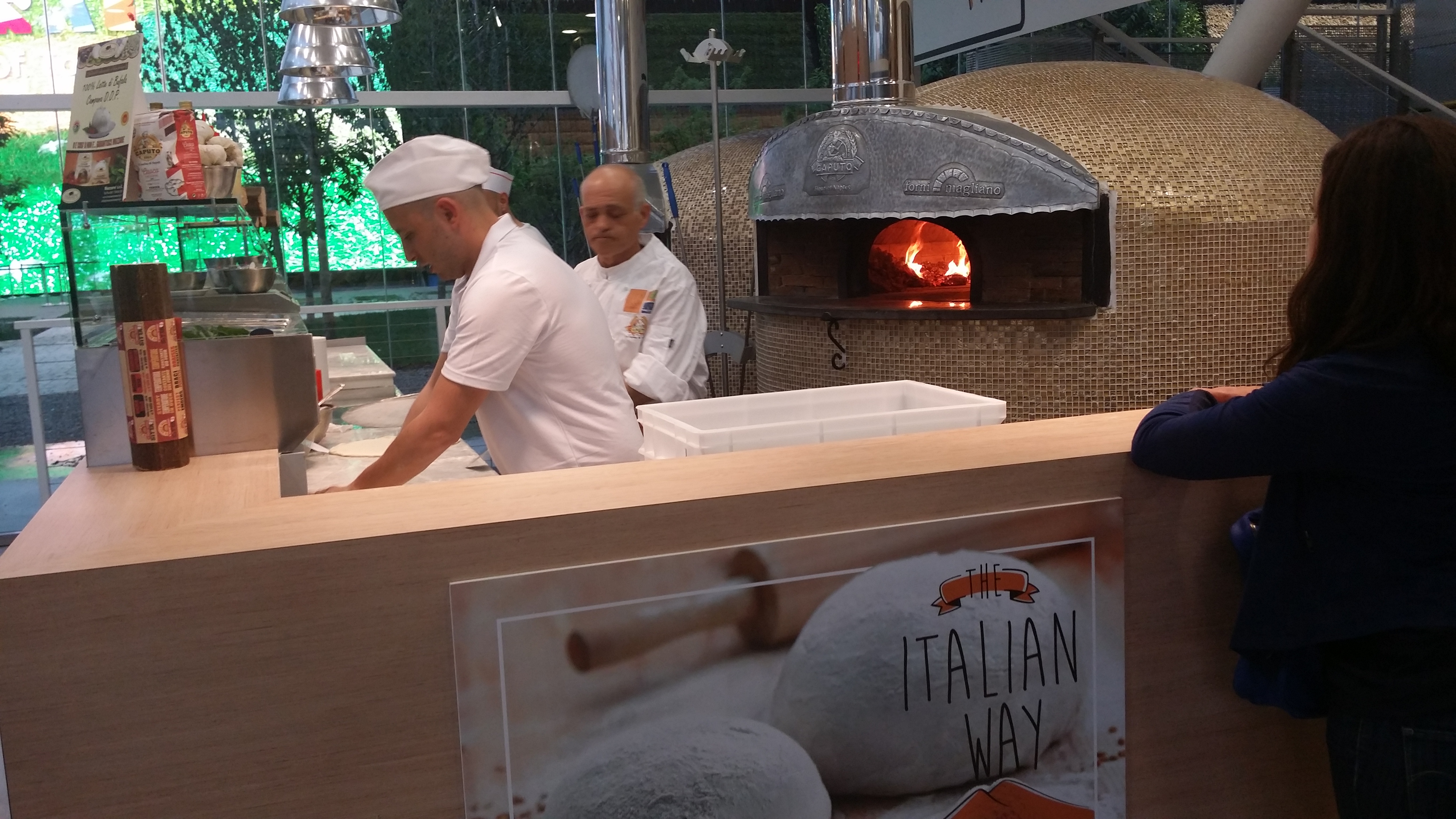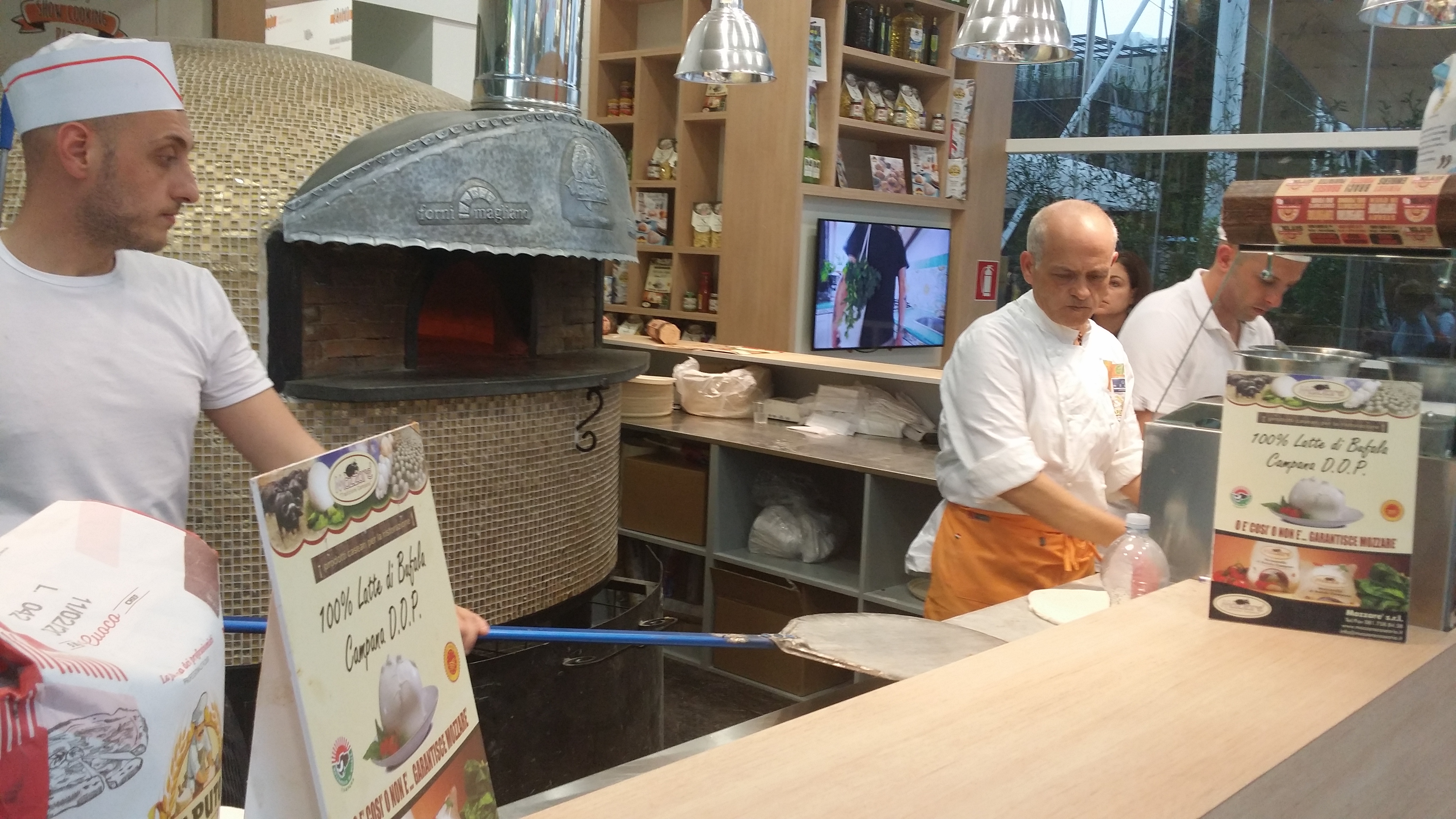 E così, nel locale “Pizza e Pasta”, all’incrocio tra il viale che porta al padiglione Italia e all’albero della vita, e il decumano centrale, si può trovare e gustare una delle pizze più buone di Napoli e provincia, la pizza più veloce d’Italia e la pizza più antica di Volla, con il maestro Roberto e i suoi allievi di “Peppe ‘a Quaglia”.