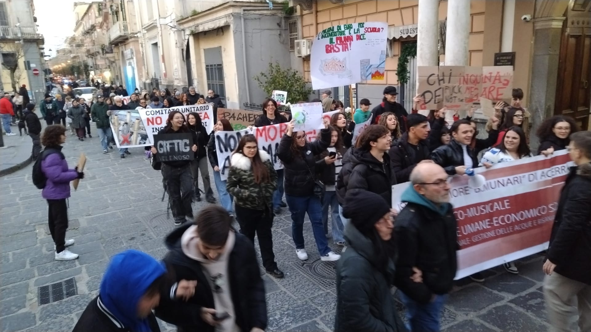 Oggi pomeriggio sono scesi in piazza come avevano promesso gli studenti del liceo Alfonso Maria de’ Liguori, che avevano occupato lunedi la loro scuola per protestare contro l’inquinamento e la mortalità per cancro che affliggono il territorio ormai da troppo tempo. Il corteo contro il biocidio è partito intorno alle 15 da piazza Duomo, davanti alla cattedrale di Acerra, per poi allungarsi sulle strade del centro storico e in periferia. Alla manifestazione hanno partecipato anche gli studenti del liceo Munari. «Chi inquina deve pagare: no all’inceneritore», la frase scritta a caratteri colorati sullo striscione posto dai ragazzi in testa al corteo. «Ci avete ucciso la salute», «Non dobbiamo morire di mal’aria», le altre parole scritte sui cartelli impugnati dai giovani manifestanti. C’erano però anche gli adulti. Erano concentrati dietro lo striscione del Comitato No Quarta Linea, sorto nel settembre dello scorso anno subito dopo la notizia che la Regione aveva approvato un emendamento destinato al progetto di realizzazione della quarta linea di smaltimento dei rifiuti all’interno dell’inceneritore.