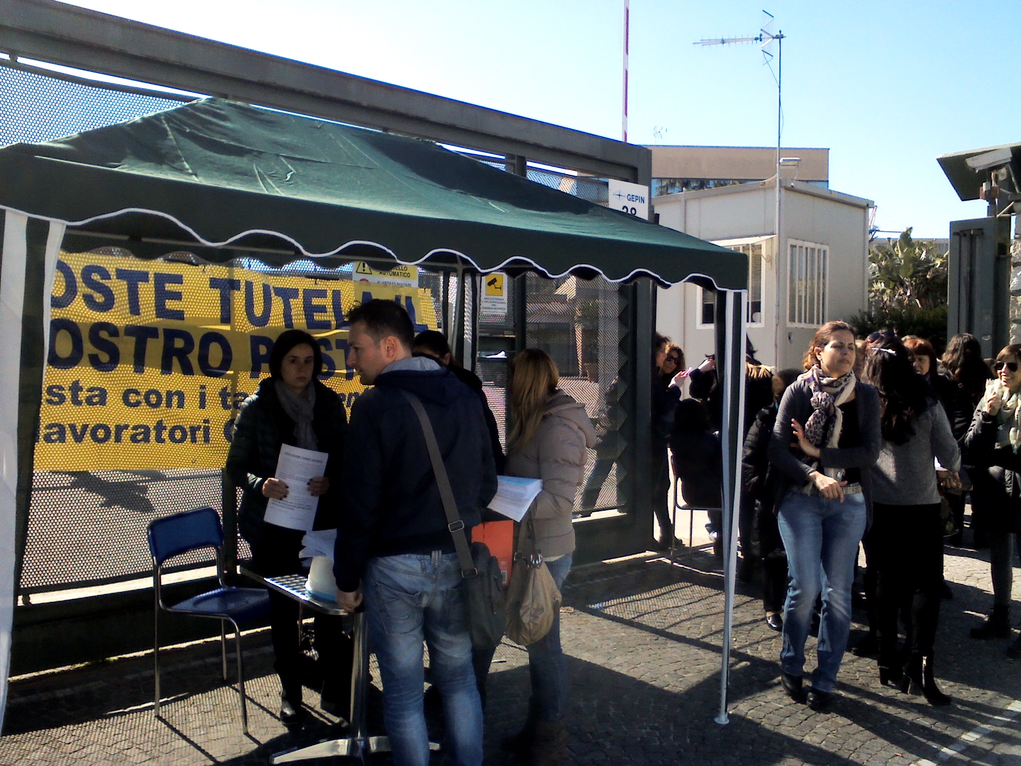 Ieri i lavoratori hanno portato qualche sediolina di plastica e si sono seduti sull’ingresso della Gepin Contact, il call center di Poste Italiane che ha perso tutte le commesse e che ha avviato la procedura di licenziamento per tutti i 220 addetti della sede di Casavatore, in viale delle Industrie. E’ la vertenza più grave che in questo momento si stia consumando in tutta la provincia di Napoli. La procedura di Gepin scadrà il 10 maggio. Oltre al presidio piazzato davanti al cancello che dalla strada porta agli uffici, lavoratori e lavoratrici del call center hanno anche montato un gazebo, dal quale hanno annunciato un corteo per lunedì prossimo, nel pieno centro di Napoli. Partirà da piazza Matteotti, dove c’è la sede centrale campana delle Poste. Insieme ai 220 licenziamenti annunciati a Casavatore Gepin Contact ne ha avviati altri 130 per la sua sede romana. Intanto è impressionante osservare gli uffici di Casavatore. Sono per metà vuoti. Davanti alla sede i lavoratori stanno preparando striscioni e volantini.