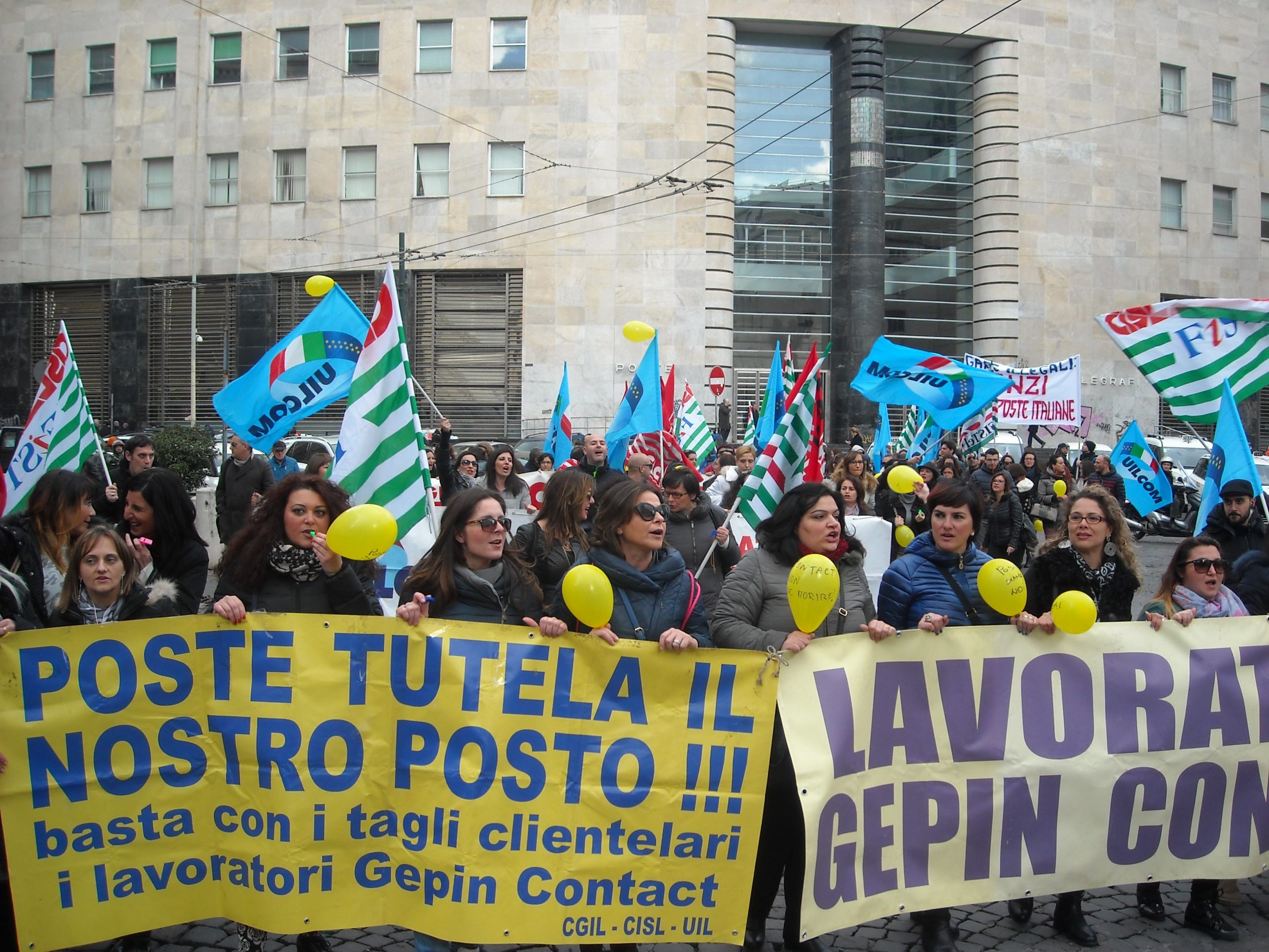 Dramma call center: la rabbia dei lavoratori Gepin Contact paralizza il centro di Napoli. Ieri mattina corteo dalle Poste alla Prefettura. “Non ci fermeremo mai, anche se resteranno sordi davanti al nostro grido di aiuto”, ha dichiarato Monica Meleleo, una lavoratrice del call center di Poste Italiane Gepin Contact, il grande ufficio di Casavatore che occupa 220 addetti. Sono tutti da licenziare. Poste Italiane ha affidato l’appalto dei servizi informativi telefonici ad altre aziende, tra le quali la I Care. La procedura di licenziamento collettivo è stata consegnata ai sindacati due settimane fa. Ieri mattina Monica e altre centinaia di colleghe e colleghi del call center Gepin hanno sfilato a Napoli in corteo dalla sede delle Poste, in piazza Matteotti, fino alla Prefettura, in piazza del Plebiscito. Traffico paralizzato ovviamente. I manifestanti si sono fatti parecchio sentire. Basti pensare che ognuno di loro aveva un fischietto. Hanno urlano slogan che danno tutta la misura del dramma occupazionale che si sta consumando. Quella di Gepin Contact è la vertenza più grave in questo momento in provincia di Napoli. “Per risolvere questo problema – spiega Peppe Di Marzo, della segreteria regionale Fit-Cisl – Poste deve bloccare immediatamente l’assegnazione delle gare. Poste – continua Di Marzo – ha assegnato all’esterno una gara col massimo ribasso, cosa che oggi non è più legale con le ultime disposizioni di legge che sono passate in Parlamento, per cui noi chiediamo una profonda riflessione da parte di Poste e il rispetto della professionalità e dell’esperienza acquisita in tutti questi anni di servizio dai lavoratori Gepin Contact “. “I lavoratori rischiano il posto a causa della revoca dell’appalto causato da una modifica ‘al ribasso’ degli oneri delle prestazioni”, dice Domenico Petrucci, della segreteria Slc Cgil. “Sappiamo che le Poste vogliono assumere, – conclude il sindacalista – allora perché non assumere i dipendenti di Gepin ? Se non lo farà il costo di questa operazione sarà doppio: dovranno essere pagati stipendi ai nuovi assunti e si dovrà pagare la disoccupazione ai dipendenti di Gepin che, alla fine, finiranno in mezzo a una strada. Chiediamo – conclude Petrucci – che queste persone possano trovare spazio nelle Poste Italiane”. Domani vertice al Mise, a Roma.