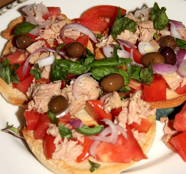Ingredienti per una fresella: 5/6 pomodorini, 1 scatoletta di tonno all’olio da 80 g, olive verdi, olive nere, olio evo, cipolla, sale, basilico. Iniziate con il bagnare la fresella e disponetela su un piatto. Quanto bagnarla dipende molto dal gusto personale, c’è chi la preferisce molto spugnata e chi invece preferisce lasciarla ancora croccante. Prendete una ciotola in cui verserete gli ingredienti: pomodorini affettati, il tonno, le olive nere e le olive verdi, la cipolla tagliuzzata. Condite il tutto con un pizzico di sale e olio evo. Fate riposare il preparato per qualche minuto in modo che gli ingredienti si insaporiscano e, poi, versatelo sulla fresella. Finite guarnendo con abbondanti e profumate foglie di basilico. Ecco pronta la vostra caponata! Se volete, potete anche spezzettare la fresella, una volta bagnata, e aggiungerla al condimento: è squisita anche così. (la ricetta è pubblicata da: napolitoday).