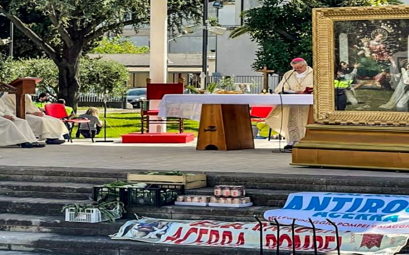 “Era l’epoca – ha rammentato Di Donna – immediatamente successiva all’enciclica Rerum Novarum di papa Leone XIII. C’era la questione operaia e contadina. Nell’agro acerrano, nolano e nocerino sarnese si facevano tre raccolti all’anno senza additivi chimici. Ora si è aggiunta la questione ambientale. Ma nonostante tutto i nostri contadini ancora riescono a produrre ottimi prodotti della terra, frutta e ortaggi di qualità. Intanto la nostra madre terra è ancora inquinata e violentata e i comuni, e la Regione soprattutto, lo devono capire”. Giustizia, pace e difesa del Creato: “Sono le tre gemelle. E’ per loro mi rivolgo alla Vergine di Pompei”. “Cosa c’è di più ingiusto – gli interrogativi del prelato – di una guerra come quella in Ucraina o delle altre guerre che non sono nient’altro che la diretta conseguenza dello scontro tra le superpotenze ? E qui da noi cosa c’è di più ingiusto del fatto che un ammalato che non ha soldi deve aspettare mesi e mesi per un’analisi, del baratro tra le pensioni d’oro e quelle da fame e tra lo stipendio di un amministratore delegato e di un operaio ? Tutto ciò è guerra generata dall’assenza di giustizia”. Nel segno della pace è stata invece la parabola di San Cuono, patrono di Acerra, il santo martire, ucciso nel terzo secolo, proveniente dall’attuale Konya, in Turchia. “Il 30 maggio prossimo – ha annunciato Di Donna – lo celebreremo ad Acerra insieme con il vescovo di Istanbul, Massimiliano Palinuro”.
