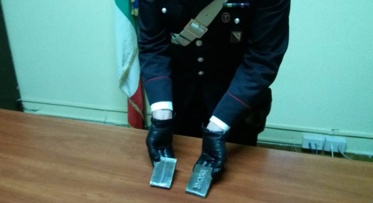 Fermato per controlli, è stato sottoposto a perquisizione personale e trovato in possesso di due panetti di hashish del peso complessivo pari a 200 grammi, nascosti all’interno del suo giubbotto.