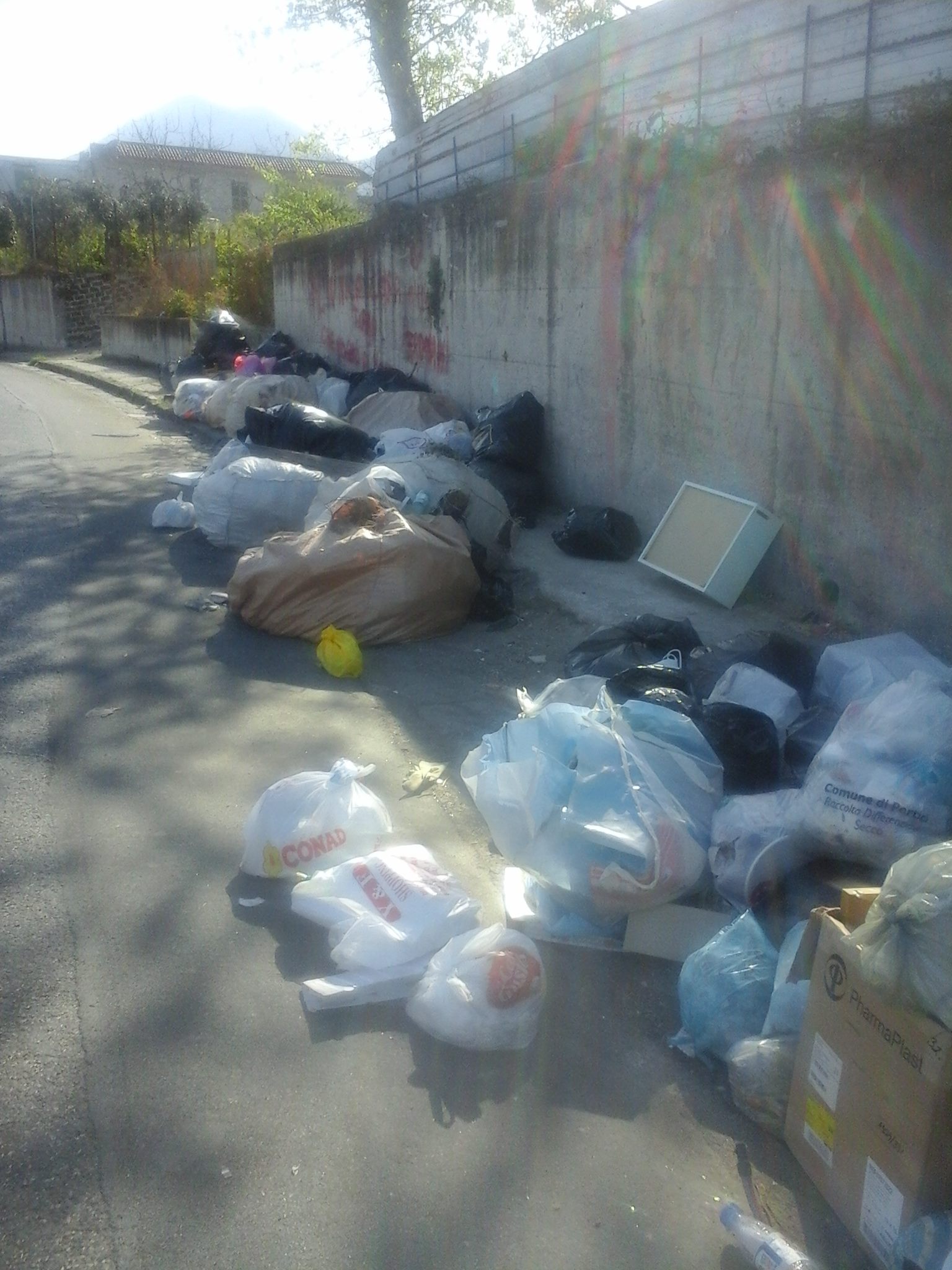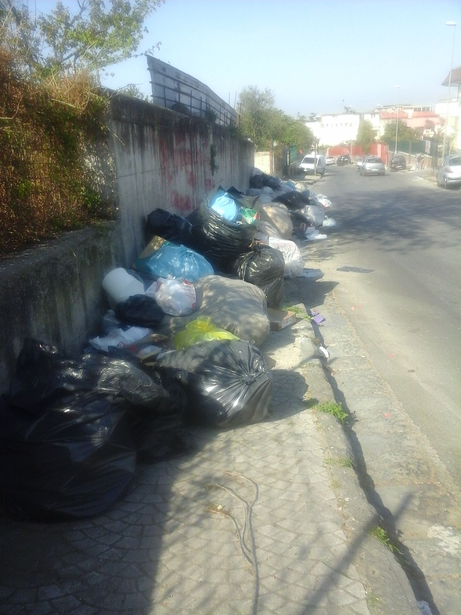 Ci siamo recati di persona giovedì sera per verificare lo stato delle cose e abbiamo notato che il materiale di scarto era aumentato e si era arricchito in varietà. Sembra inoltre, a detta di Romano, che il tutto sia alla conoscenza di chi si occupa della nettezza urbana (e come farebbero a non notarla lì, in mezzo alla strada!), infatti qualcosa viene prelevato ad ogni passaggio degli addetti ma la lotta è impari poiché, ad ogni tramonto, le creature della notte si ripresentano per dare il loro apporto al degrado locale, rimpinguando l’accumulo di rifiuti con scarti di falegnameria, materiale di risulta edilizio e vario rifiuto dall’evidente origine domestica.