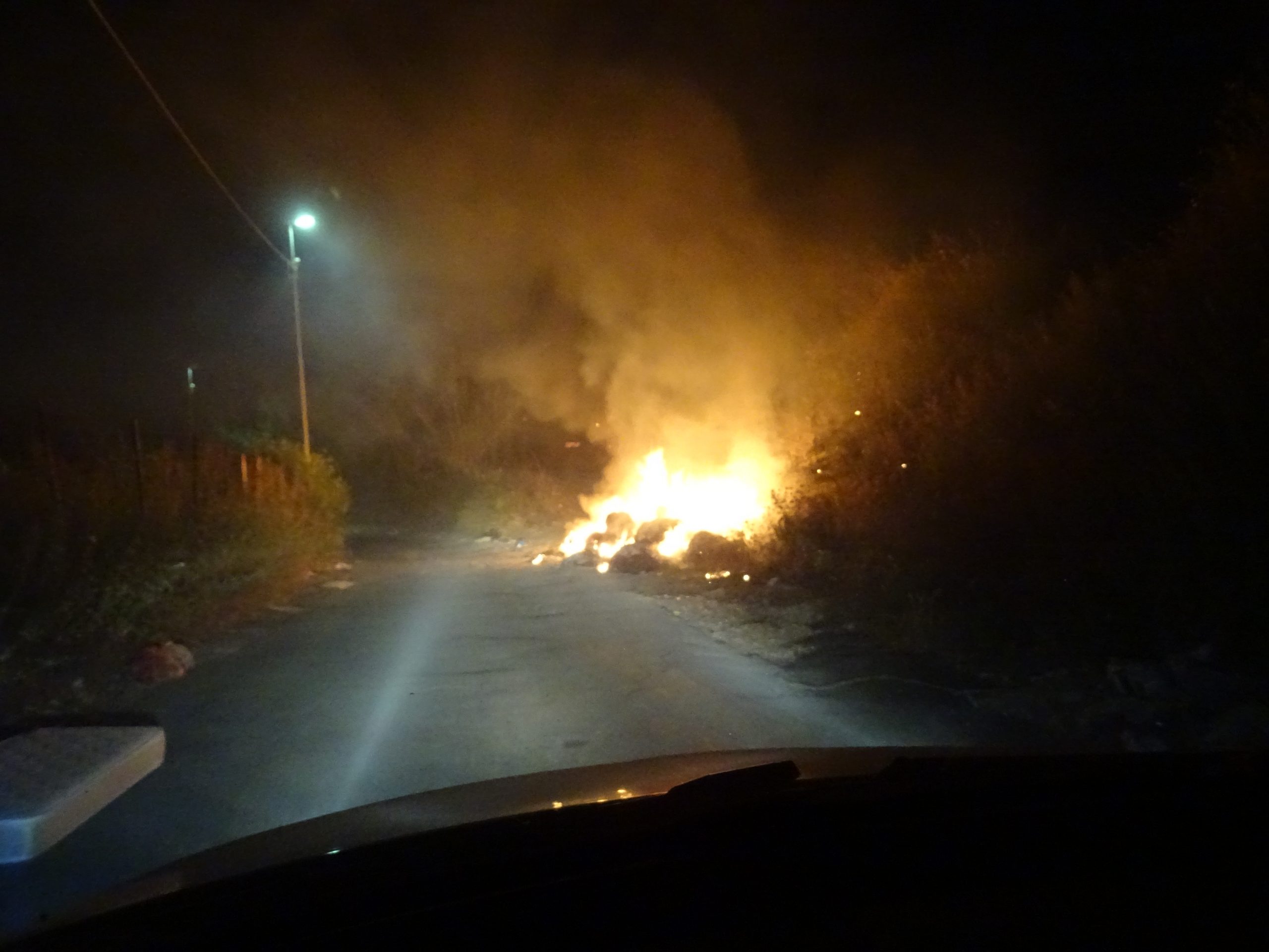 L’aria è acre in via Falconi a San Sebastiano al Vesuvio e le luci del traffico domenicale sono filtrate dal fumo che si espande fino al centro del paese vesuviano. Carico un amico in auto e andiamo là dove già immaginiamo che possa esserci un incendio, poiché l’odore è quello inconfondibile della plastica bruciata e dei roghi di rifiuti, ed ormai sappiamo bene dove viene perpetrato questo reato.