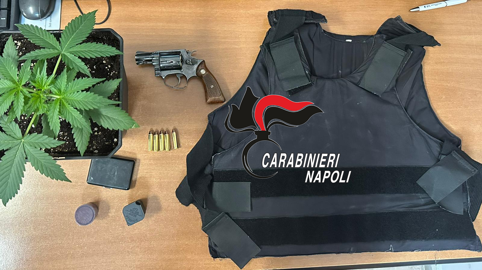 SAN VITALIANO: Pistola, giubbotto antiproiettile e una piantina di cannabis. 47enne arrestato dai Carabinieri