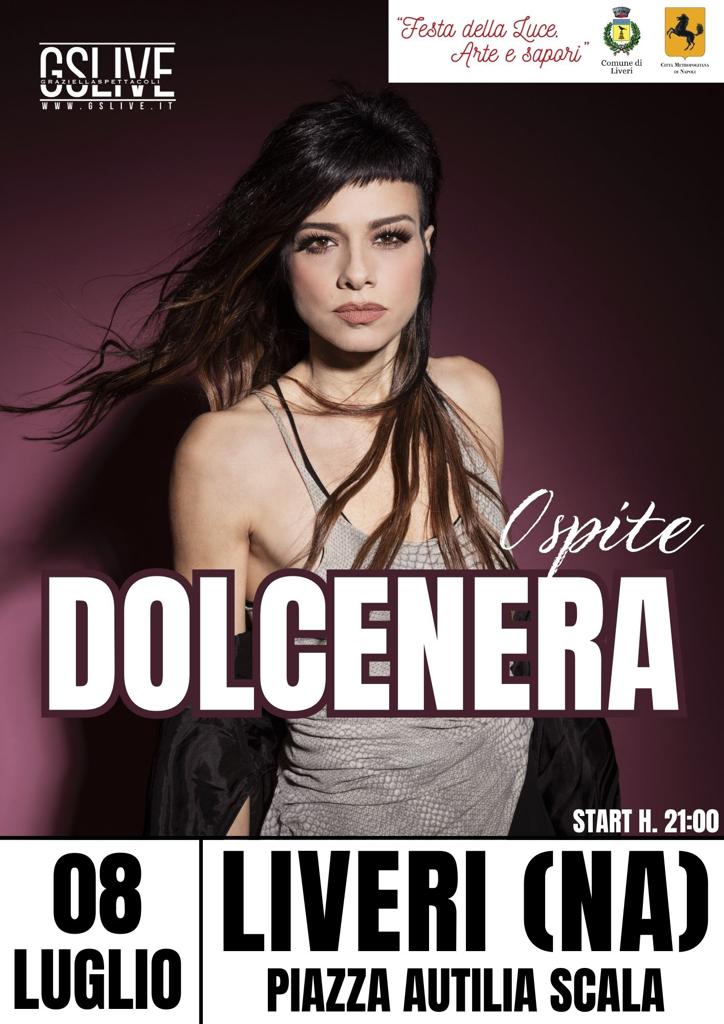 Il Comune di Liveri ospiterà una nuova tappa del progetto “Festa della Luce. Arte e sapori.”, promosso dall’amministrazione Comunale, guidata dal Sindaco Ing. Raffaele Coppola, e inserito nel “Cartellone degli Eventi Metropolitani”. L’evento si terrà sabato 8 luglio, a partire dalle 21.00, presso Piazza Autilia Scala, nella splendida cornice del Santuario di Santa Maria a Parete, luogo di fede devozione simbolo del territorio. Ospite della serata, sarà Dolcenera, eclettica artista, cantante, compositrice e musicista in grado di coniugare la musica pop a testi profondi, particolarmente motivi, rendendo le sue esibizioni carismatiche, esplosive e travolgenti da qualsiasi punto di vista.