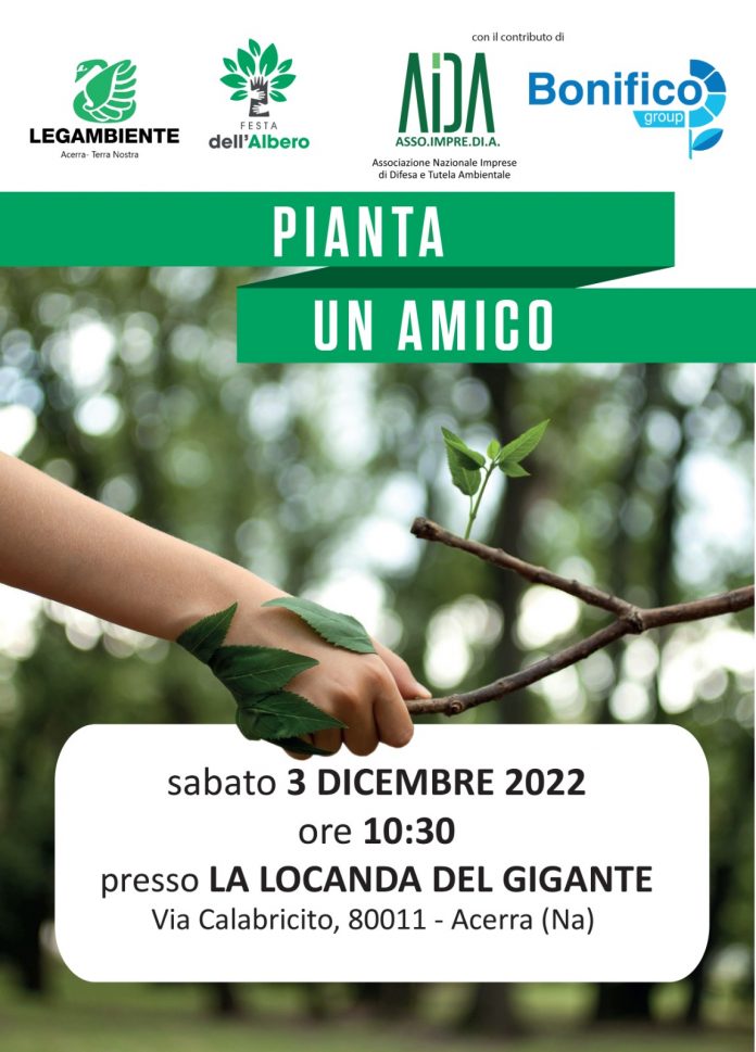 Acerra. Proseguono le attività di piantumazione e coinvolgimento della comunità nell’ambito della Festa dell’Albero, la storica campagna di Legambiente giunta alla 27esima edizione. Sabato 3 dicembre Legambiente, in collaborazione con Bonifico Group srl, specializzata nella progettazione e realizzazione del verde pubblico, dell’arredo urbano e da ASSO.IMPRE.DI.A. Associazione nazionale Imprese di Difesa e tutela Ambientale, che raggruppa le imprese, i professionisti e gli enti no profit che svolgono le loro attività nel settore dello sviluppo, tutela, salvaguardia dell’ambiente e del territorio ha promosso un’iniziativa di piantumazione presso la Locanda del Gigante, luogo di accoglienza nel quale si promuovono percorsi di reinserimento sociale e lavorativo.
